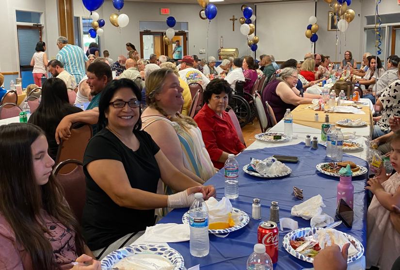 On Saturday, July 1st, St. Thomas the Apostle Parish celebrated the feast day of our patron saint, Saint Thomas. The celebration this year began with a bi-lingual Mass and was followed by a delicious barbecue prepared by the Knights of Columbus, Council 2603, and potluck provided by the various organizations and ministries of STAP. Those attending could then opt to participate in fun family activities (corn hole toss, funnel toss, bingo) or watch the Teen Ministry challenge all willing adults to a friendly game of volleyball (it was a tie this year). As darkness fell, everyone was treated to a fireworks show provided by the Knights of Columbus.